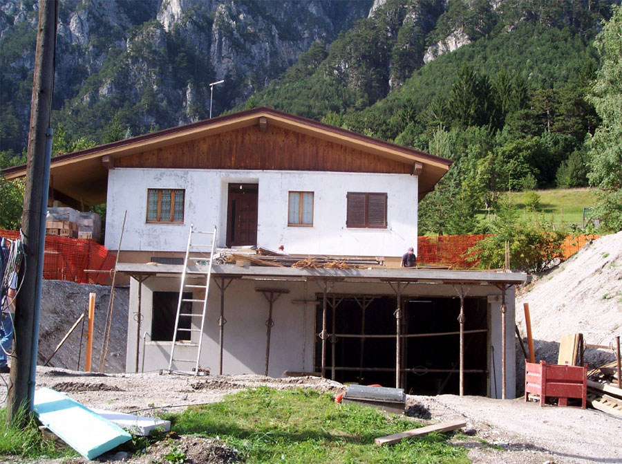 A Malborghetto su una nostra abitazione del 1979 formata da un piano terra e soffitta non praticabile è stato costruito in aderenza e collegato all’esistente, un nuovo fabbricato formato da un piano interrato, uno abitazione ed un primo piano.
