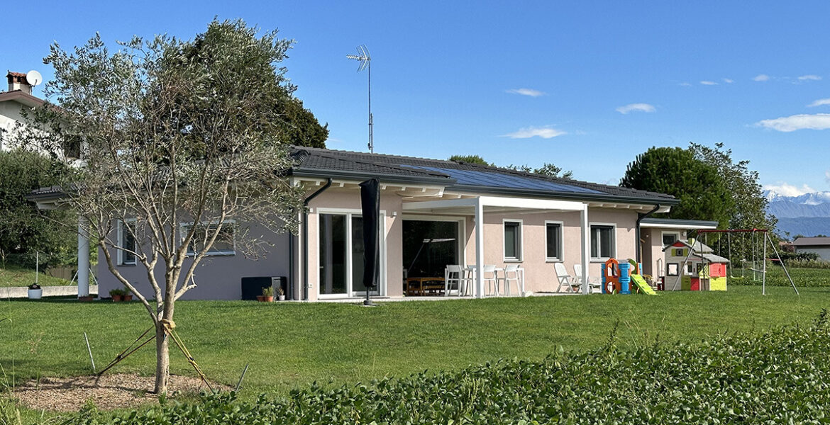 Abitazione su piano unico dove le tre tipologie di copertura quali legno, cemento e l’acciaio si integrano perfettamente.