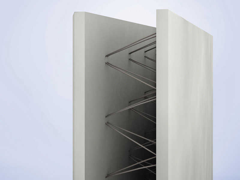 Il sistema strutturale delle pareti è del tipo a cassero collaborante: i manufatti sono costituiti da due lastre parallele di calcestruzzo armato, collegate tra loro da tralicci elettrosaldati in acciaio; escono dallo stabilimento con un’intercapedine tra le due lastre, che viene poi riempita con un getto integrativo di calcestruzzo eseguito in cantiere, formando così l’ossatura portante della casa.