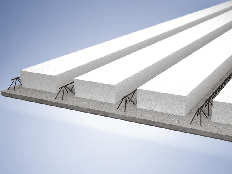 Il sistema solaio è invece costituito da lastre di calcestruzzo tipo predalles, irrigidita da tralicci in acciaio e alleggerita con blocchi in polistirolo e vengono impiegati sia per i solai orizzontali interpiano, che per quelli in pendenza (tetti); anche i solai, come la pareti, sono predisposti per ricevere un getto integrativo di calcestruzzo da eseguirsi in cantiere.